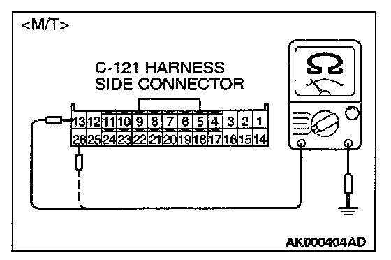 STEP 7. Check the continuity at ECM harness side connector C-121