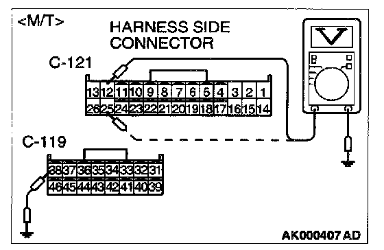 STEP 9. Check the power supply voltage at ECM harness side connector C-121, C-119
