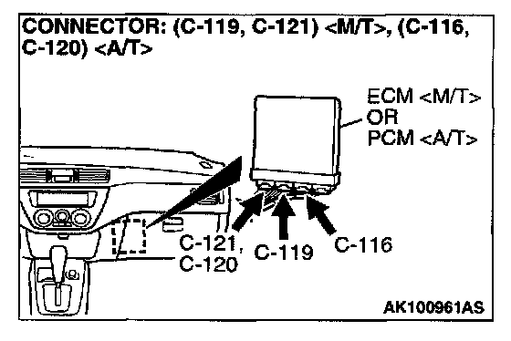 STEP 1: Check connector C-119, C-121 at ECM