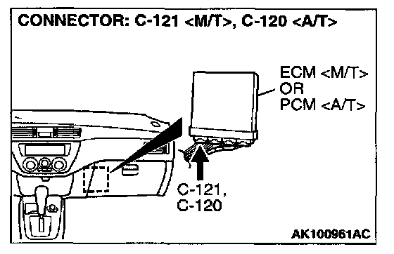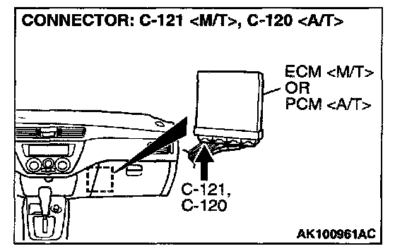 STEP 9. Check connector C-121 at ECM or connector C-120 at PCM for damage.