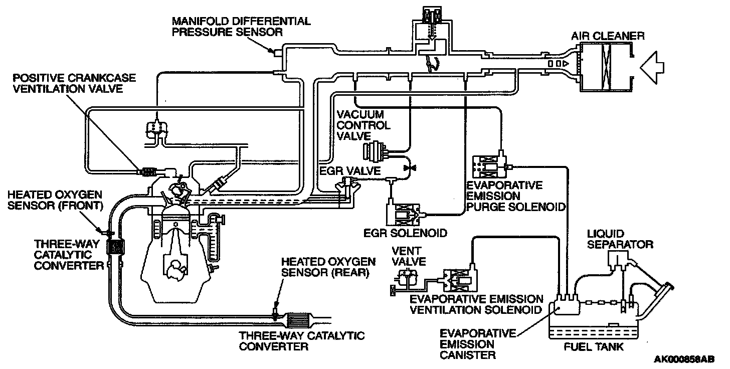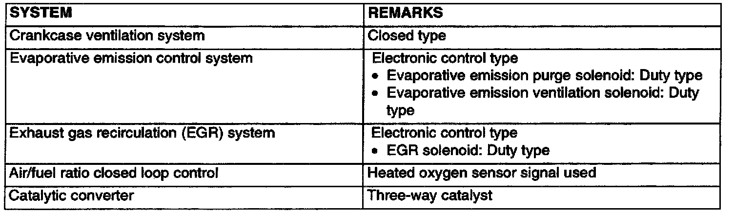 The emission control system is basically the same as that for the 1.8L engine installed in the MIRAGE.