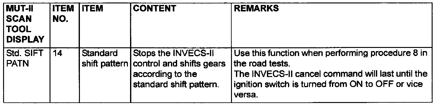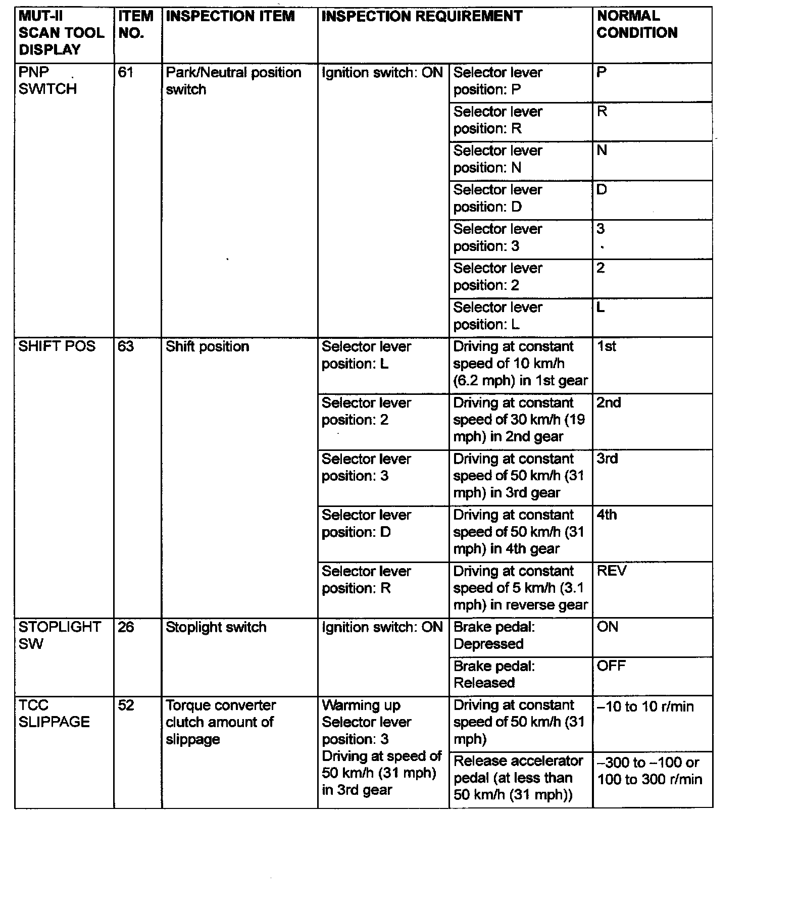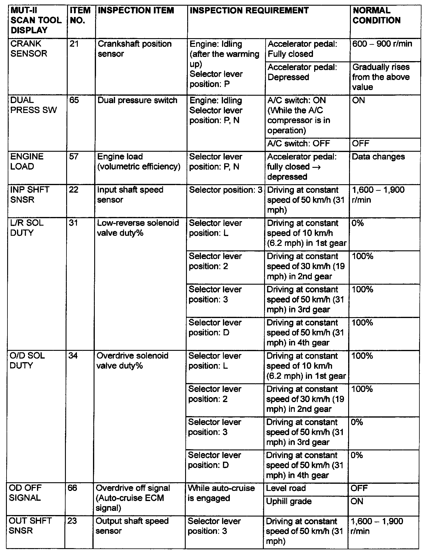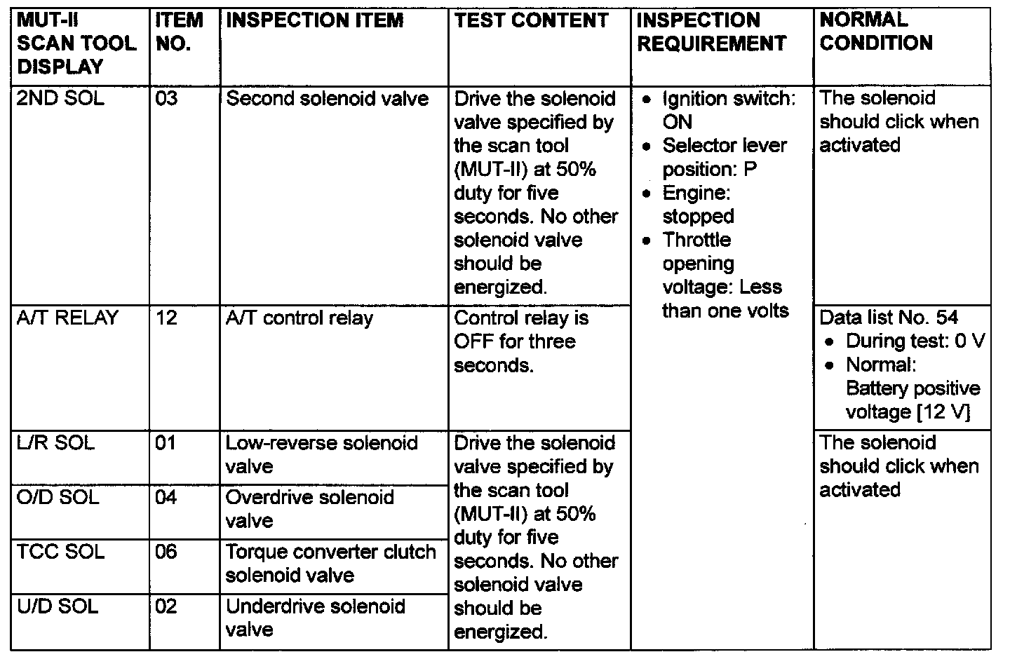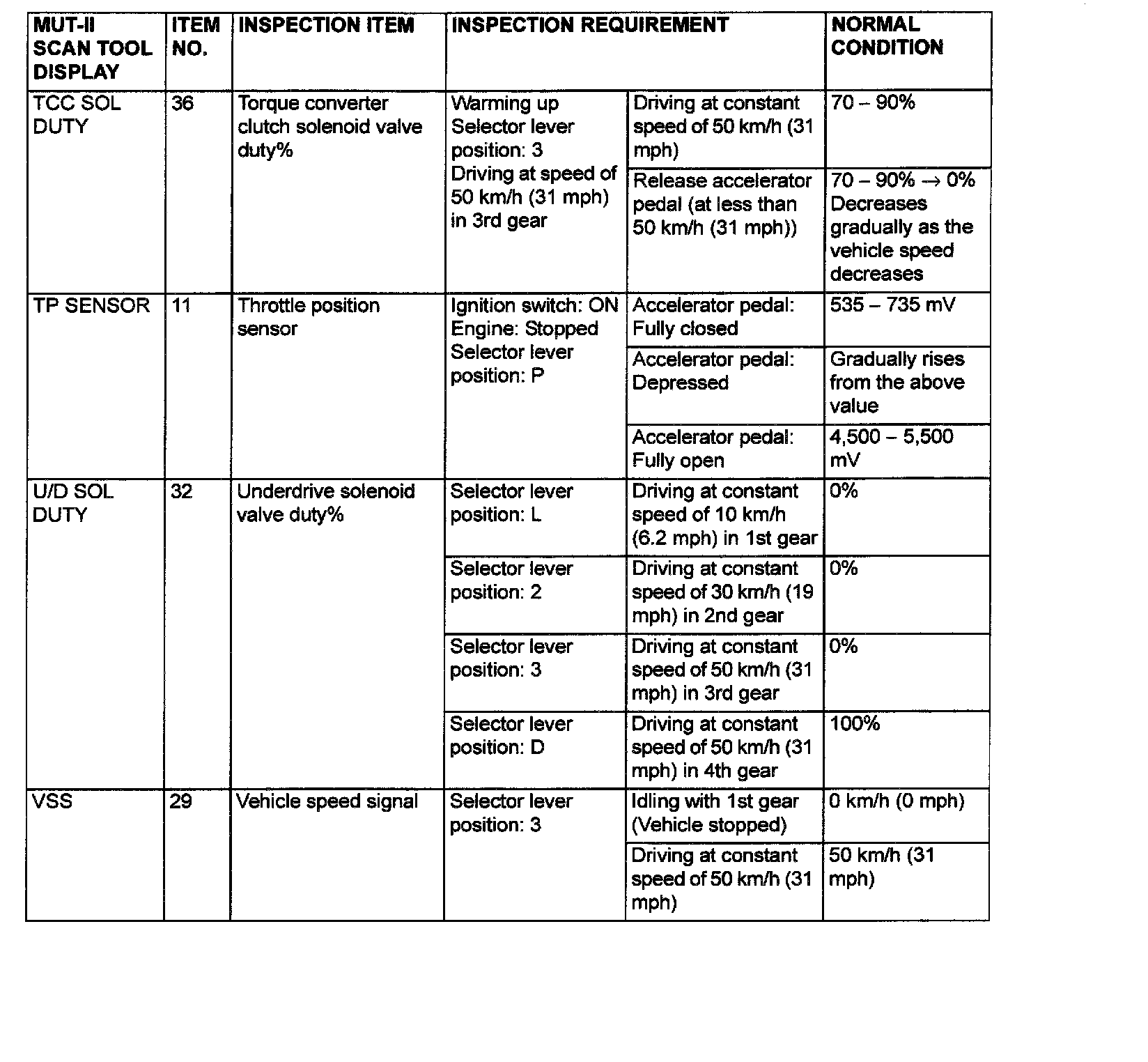 PCM TERMINAL VOLTAGE REFERENCE CHART FOR TRANSAXLE OPERATION