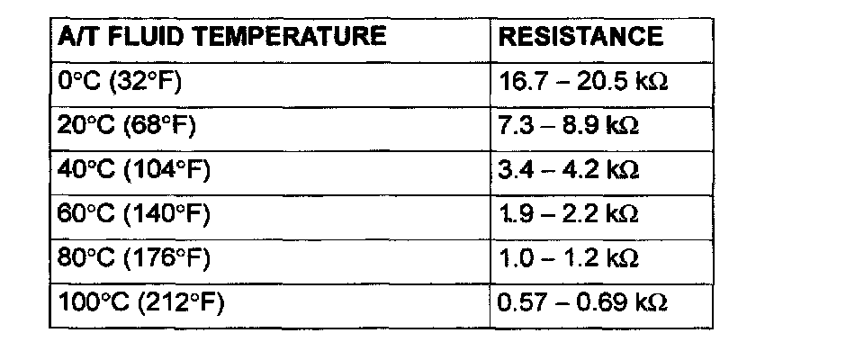 3. If the A/T fluid temperature sensor resistance is not consistent with the fluid temperature replace A/T fluid temperature sensor.