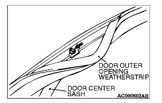 1. Remove the door outer opening weatherstrip from the center sash upper only.