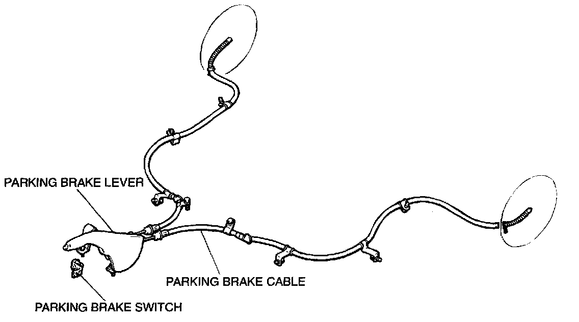 The parking brake is of a mechanical control type acting on the rear wheels. A lever is used to apply the parking brake.