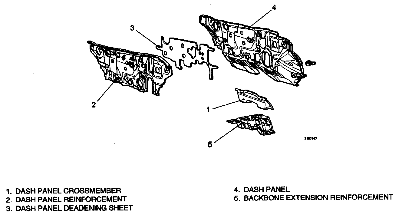A deadening sheet (foam rubber sheet) has been placed in between the dash panel and the dash panel reinforcement to create a double-walled structure which improves sound insulation.