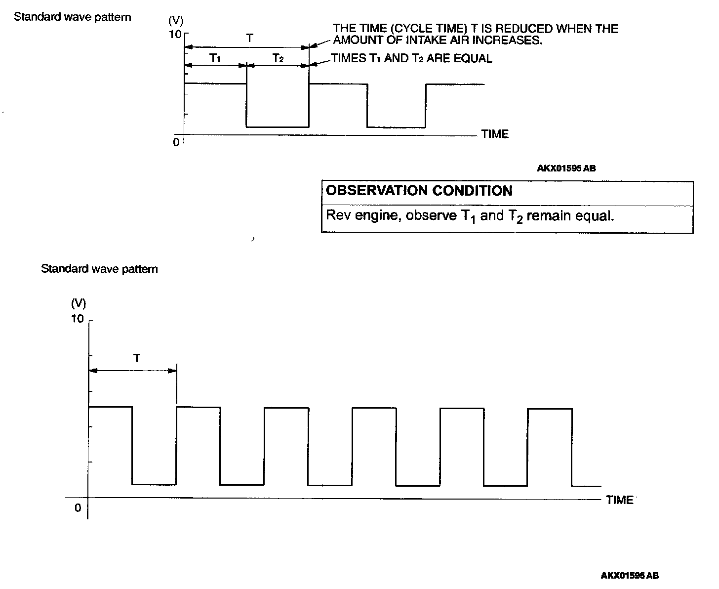 - Unstable wave pattern with non-uniform frequency. An ignition leak will distort the wave pattern temporarily, even if the volume air flow sensor is normal.