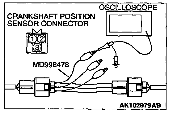 3. Disconnect the crankshaft position sensor connector, and connect the test harness special tool (MD998478) in between.