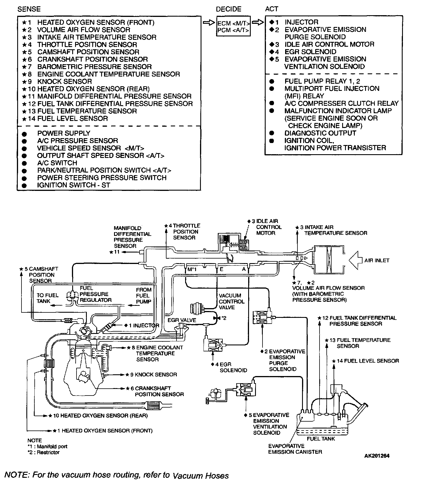 The Multiport Fuel Injection System consists of sensors, actuators and the engine control module (ECM)