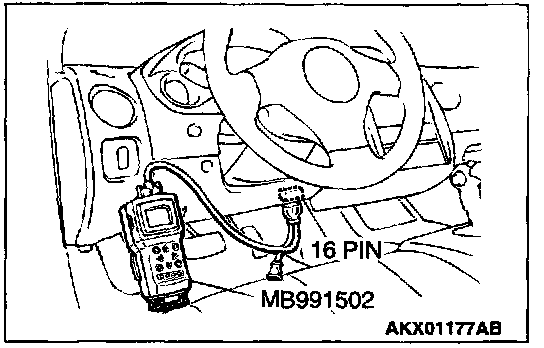 1. Connect scan tool MB991502 to the data link connector.
