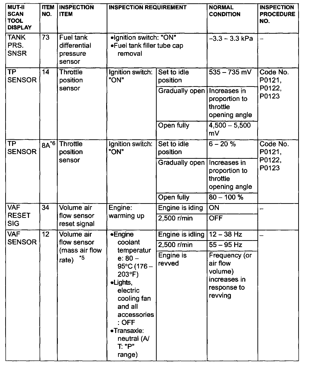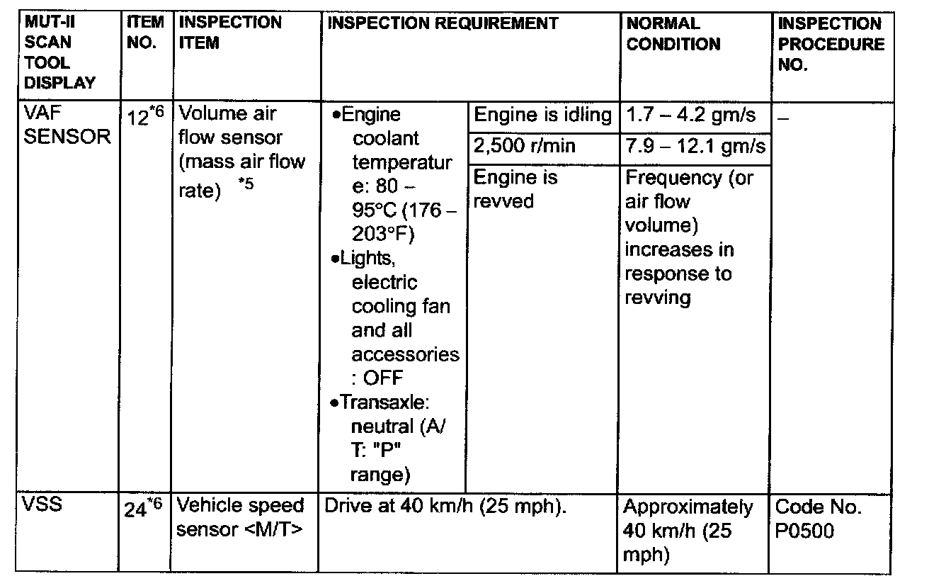 *5: In a new vehicle [driven approximately 500 km (311 mile) or less], the volume air flow sensor output frequency is sometimes 10% higher than the standard frequency.