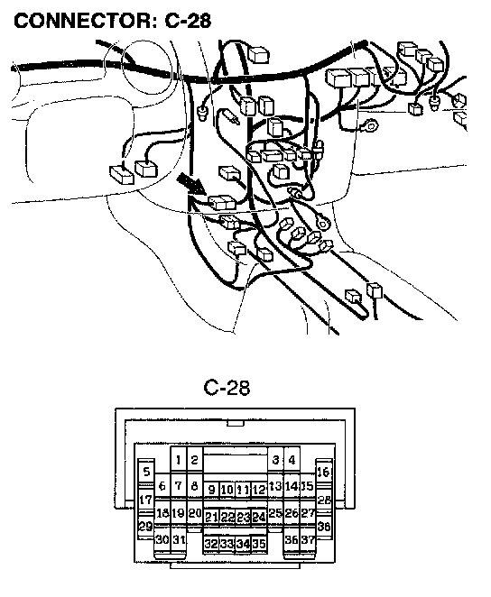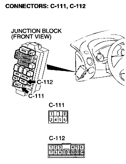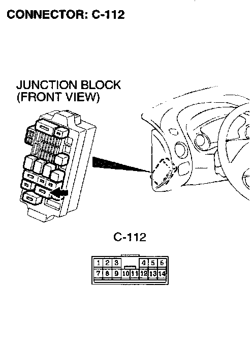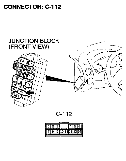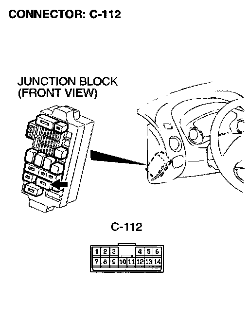 STEP 18. Check connectors C-28 at intermediate connector and C-112 at junction block for damage.