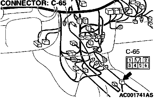 STEP 9. Check connector C-65 at shift switch assembly for damage.