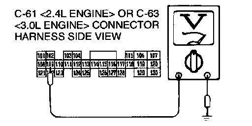 STEP 12. Check the switch output voltage at PCM connector C-61 <2.4L Engine> or C-63 <3.0L Engine> by backprobing.