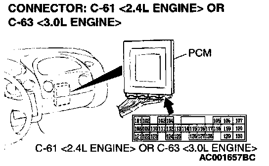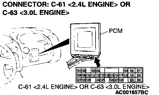 STEP 13. Check connector C-61 <2.4L Engine> or C-63 c3.0L Engine> at PCM connector for damage.