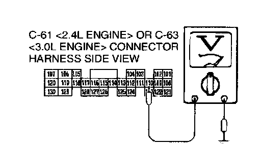 STEP 26. Check the switch output voltage at PCM connector C-61 <2.4L Engine> or C-63 <3.0L Engine>.