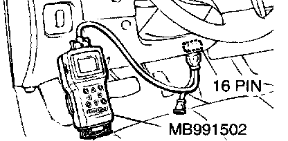 CAUTION: To prevent damage to scan tool MB991502, always turn the ignition switch to the "LOCK" (OFF) position before connecting or disconnecting scan tool MB991502.