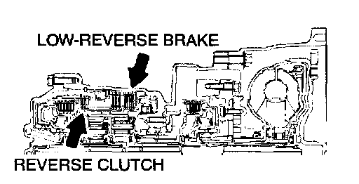 If the vehicle does not backward when the selector lever is shifted from "N" to "R" range while the engine is idling, the cause is probably abnormal pressure or a malfunction of the reverse clutch, low-reverse brake, or valve body.
