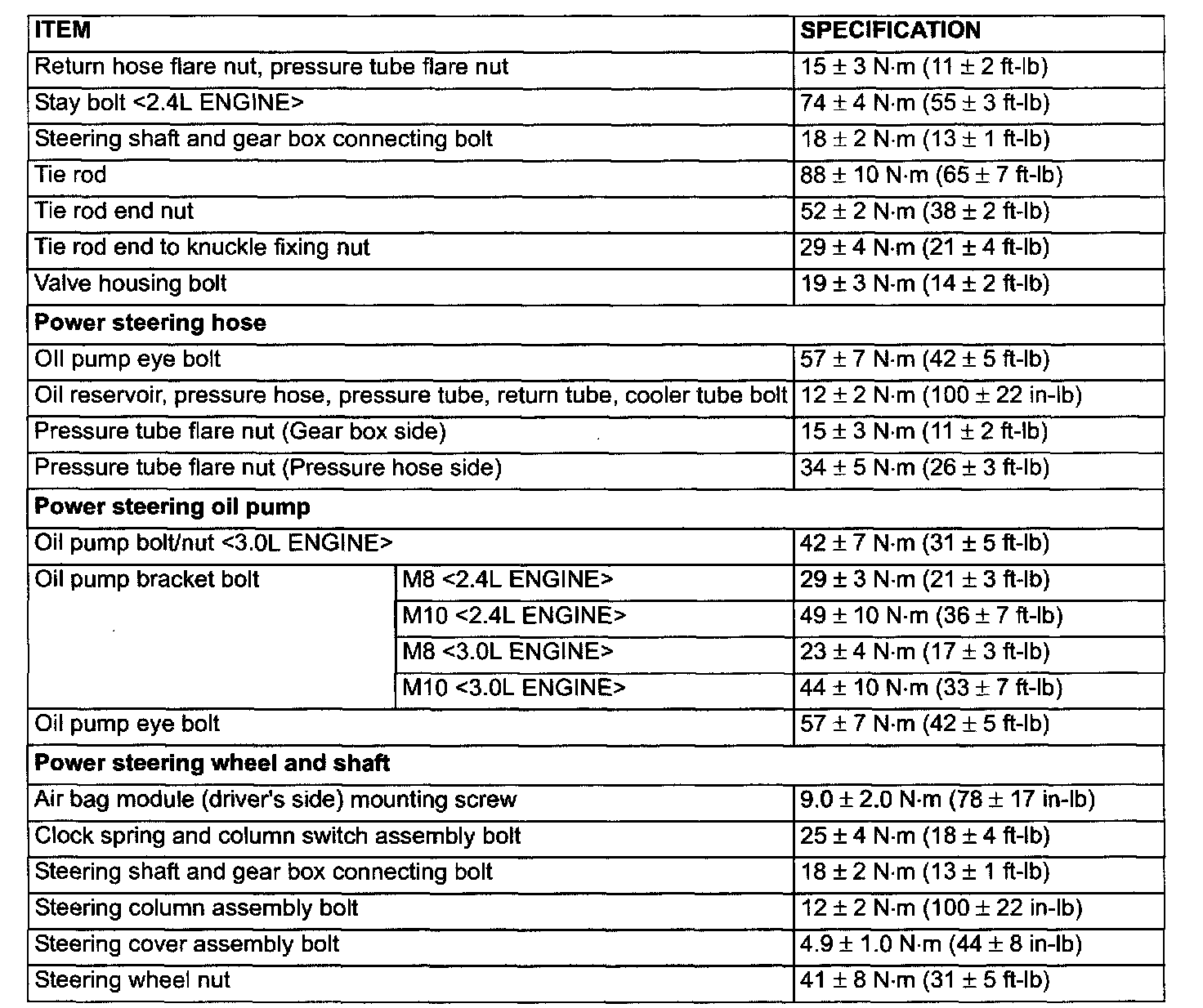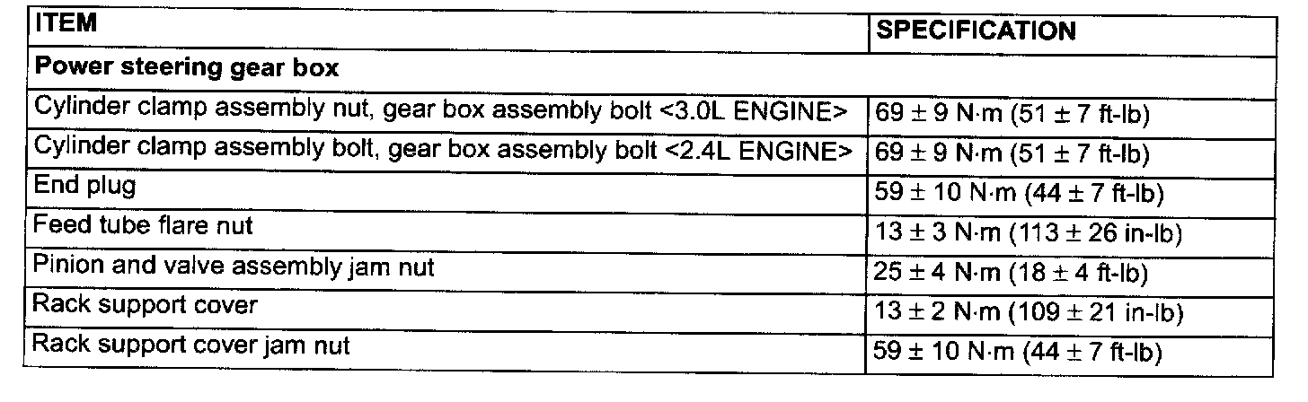 Power Steering Tightening Specifications