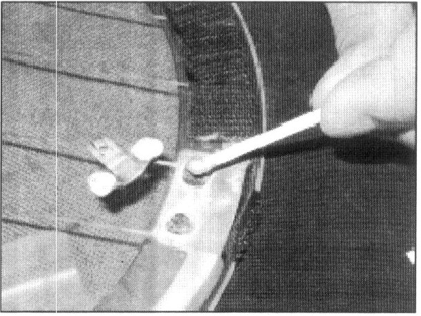5. Apply the mixed adhesive to the area on the defogger grid where the tab will be reattached. In some cases, grid material may be missing and the glass visible. The grid material may have torn loose from the grid when the tab detached. If you are mounting the tab in the same place, make sure to apply enough epoxy adhesive to cover the hole in the grid material completely, spreading the adhesive out around the hole so there will be a good electric connection from the tab to the grid material.