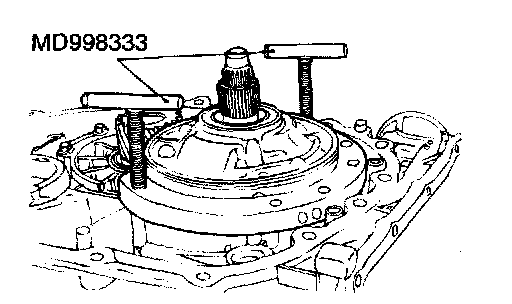 27. Turn special tools MD998333 to remove the oil pump.