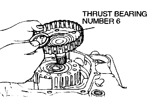 38. Remove overdrive clutch hub and thrust bearing number 6.
