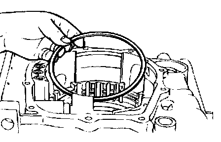 4) Remove the one-way clutch inner race, O-ring, spring retainer, return spring and low-reverse brake piston.