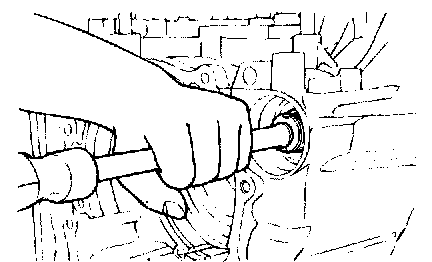 20. Remove the differential bearing outer race and spacer from the torque converter housing.