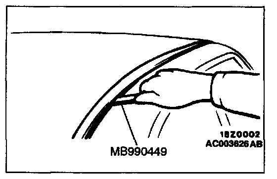 5. Use special tool MB990480 to remove the windshield,