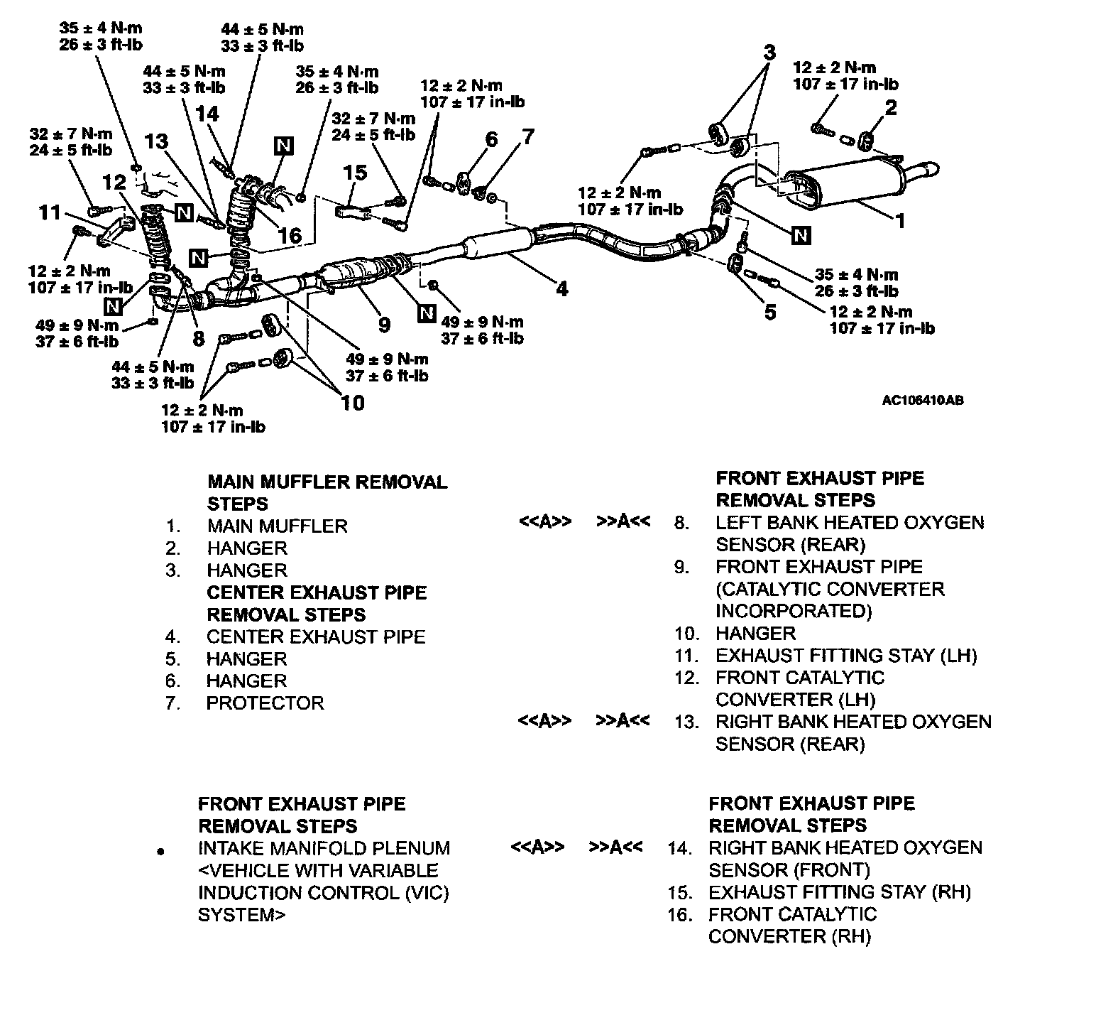 REMOVAL AND INSTALLATIONExhaust Pipe, Main Muffler And Catalytic Converter: