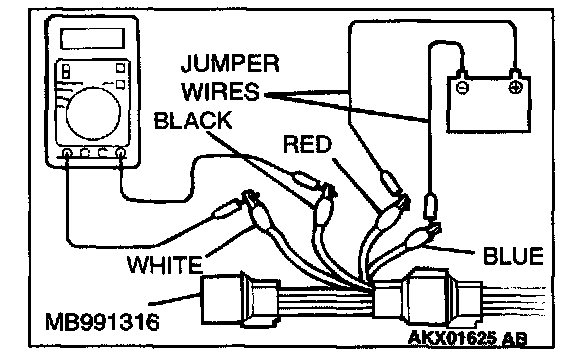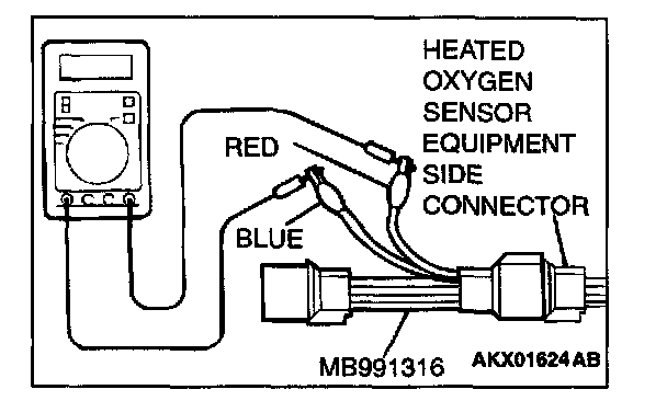 1. Disconnect the heated oxygen sensor connector and connect special tool MB991316 to the connector on the heated oxygen sensor side.