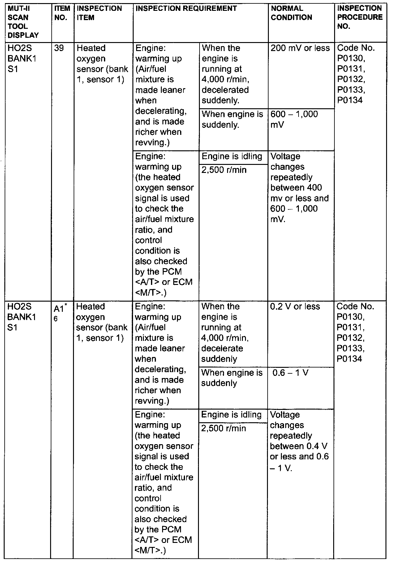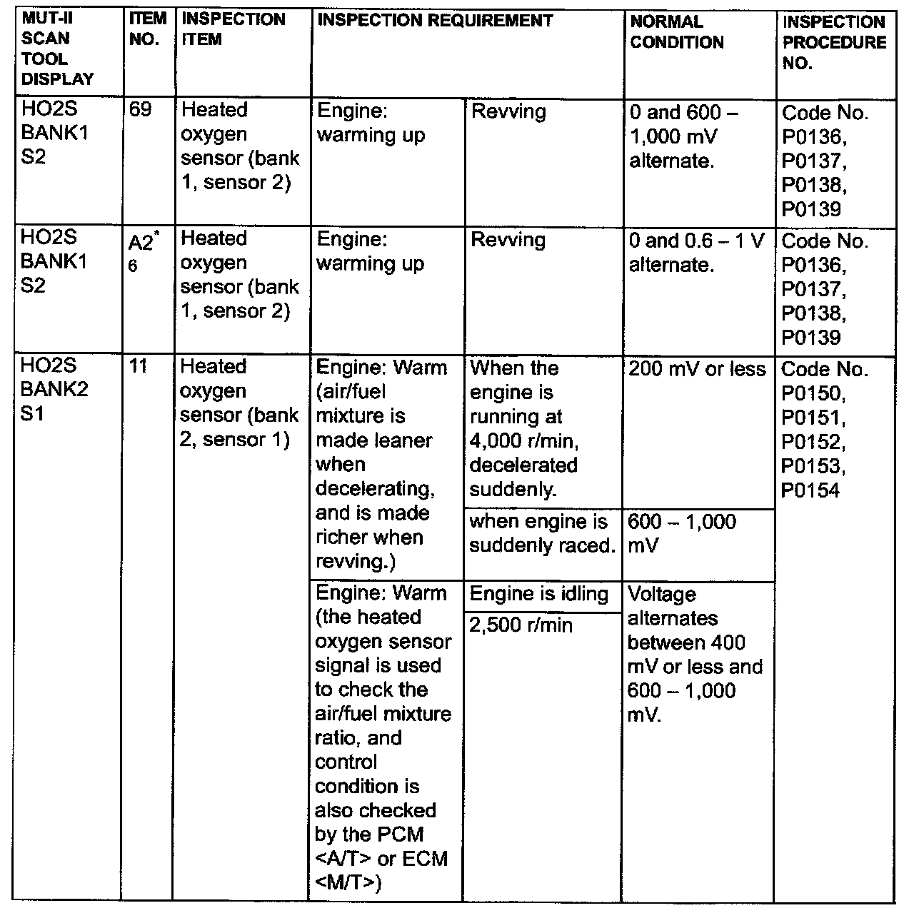 NOTE: Sensor 1 indicates the sensor mounted at a position closest to the engine, and sensor 2 indicates the sensor mounted at the position second close to the engine.