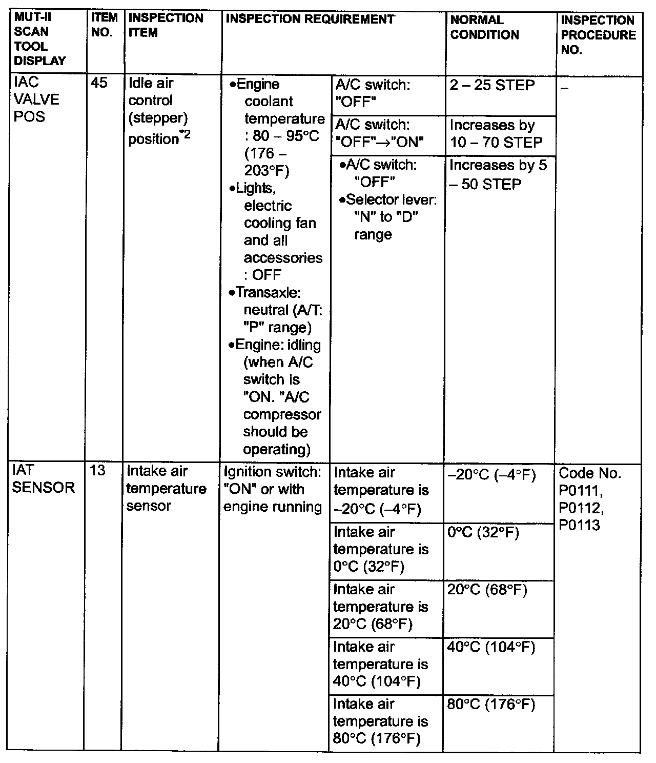 NOTE: *1: If the idle speed is lower than the standard value on a very cold engine [approximately -20 °C (-4 °F)] even when the IAC motor is fully opened, the air volume limiter built in the throttle body could be defective.