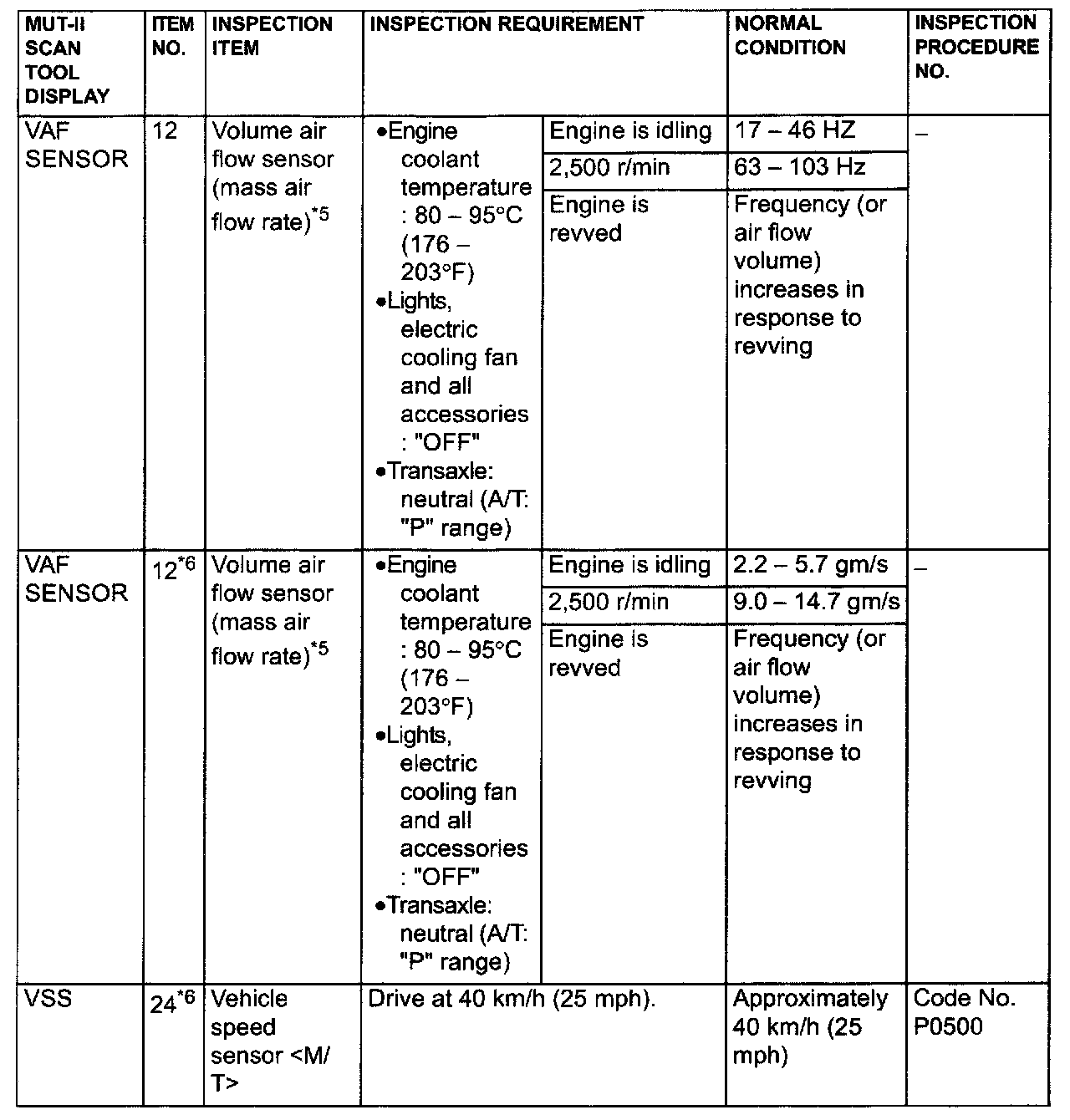 NOTE: *5: In a new vehicle [driven approximately 500 km (311 mile) or less], the volume airflow sensor output frequency is sometimes 10% higher than the standard frequency.