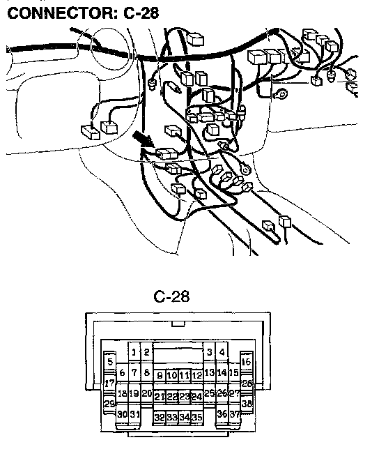 STEP 4. Check connectors C-57 <2.4L Engine> or C-59 <3.0L Engine> at PCM and C-28 at inter mediate connector for damage.