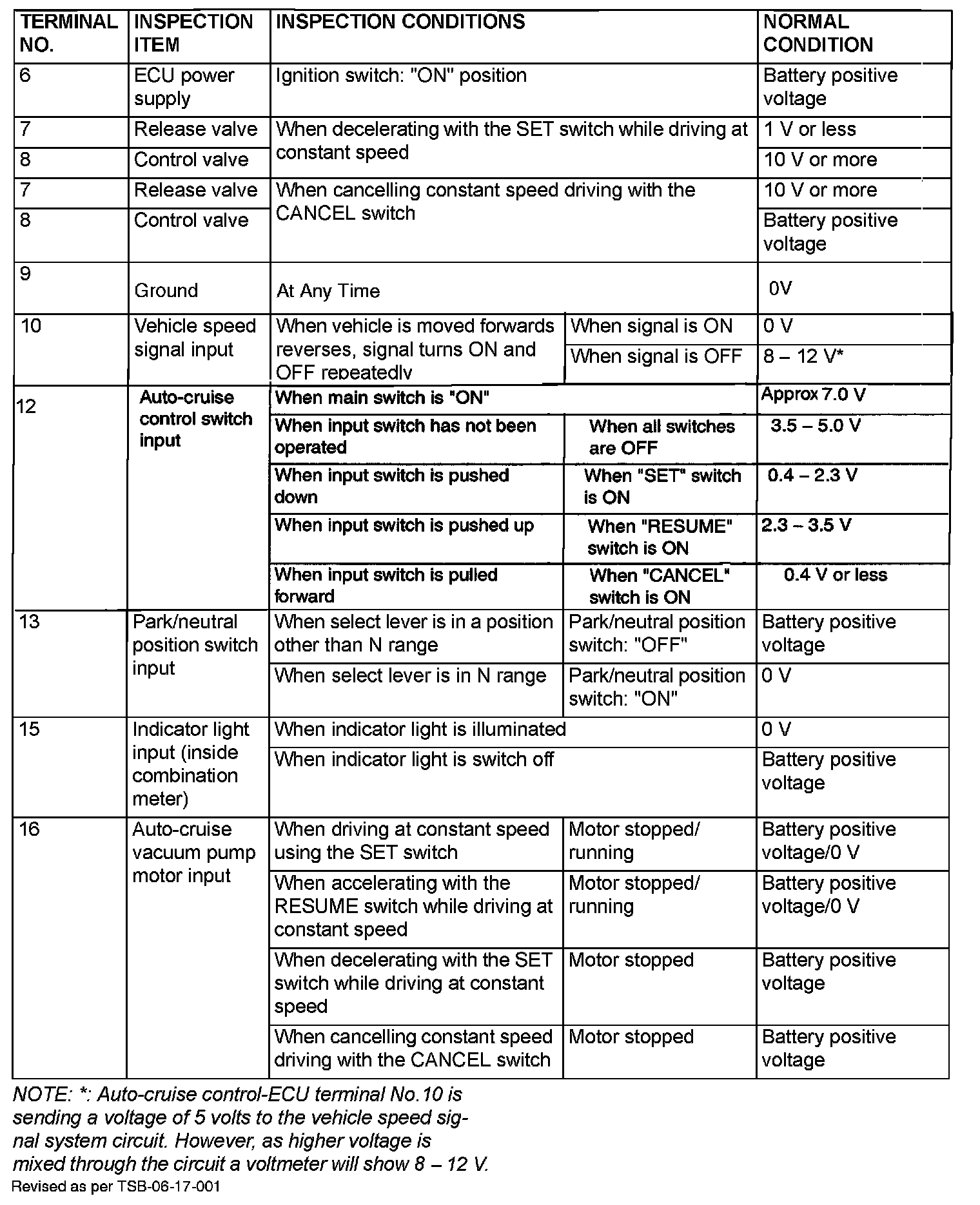 Cruise Control Module: Testing and Inspection
