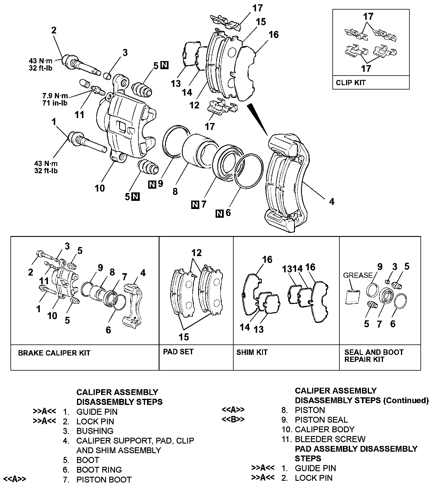 REAR DISC BRAKE ASSEMBLY OVERHAUL W/ RELATED COMPONENTS