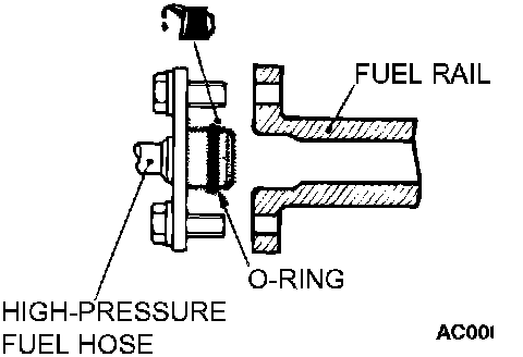 CAUTION: Do not allow engine oil to enter the fuel rail.