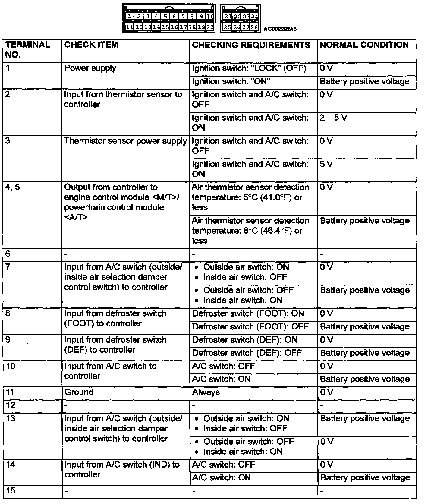 ECU Connector View And Terminal No: 1 - 15: