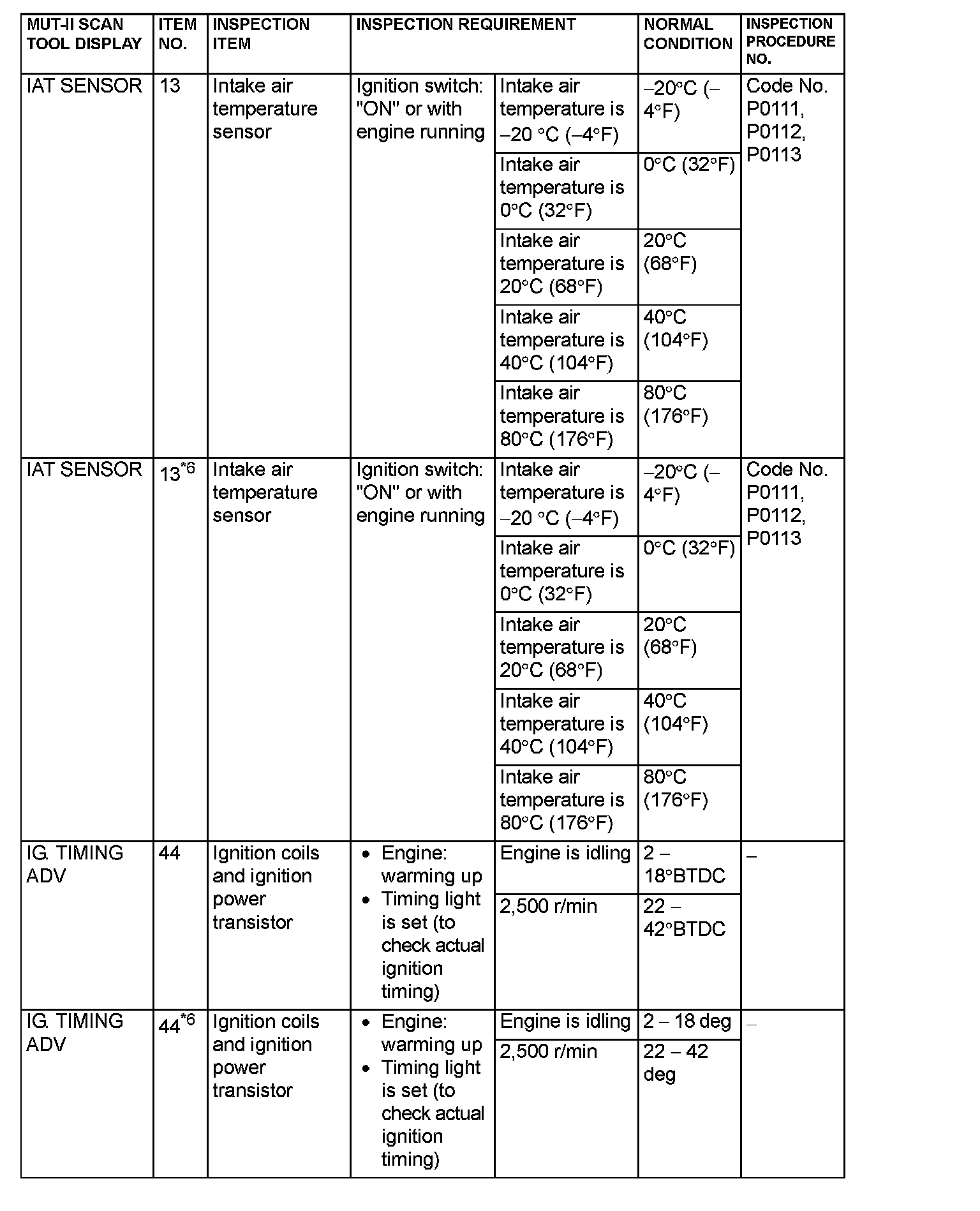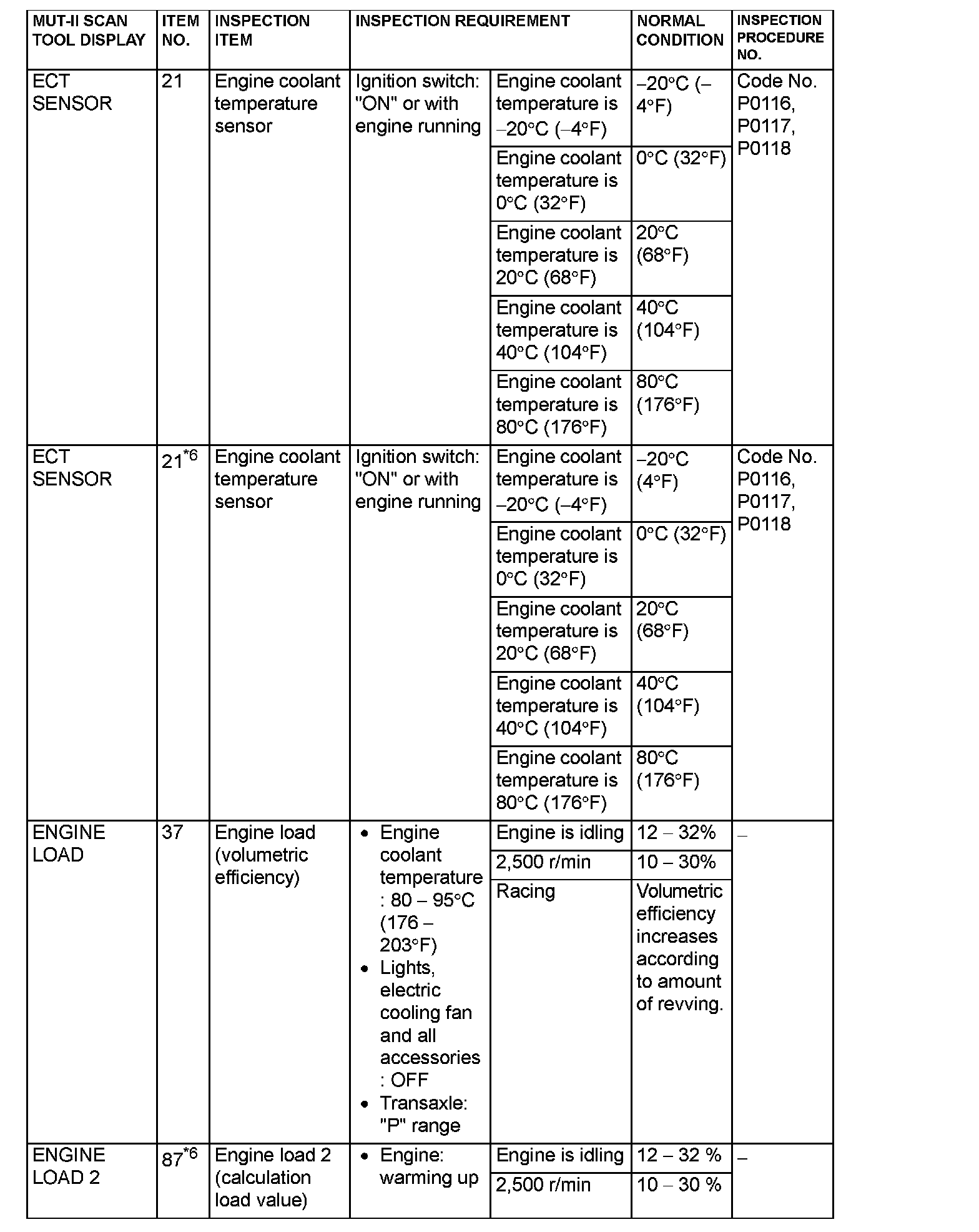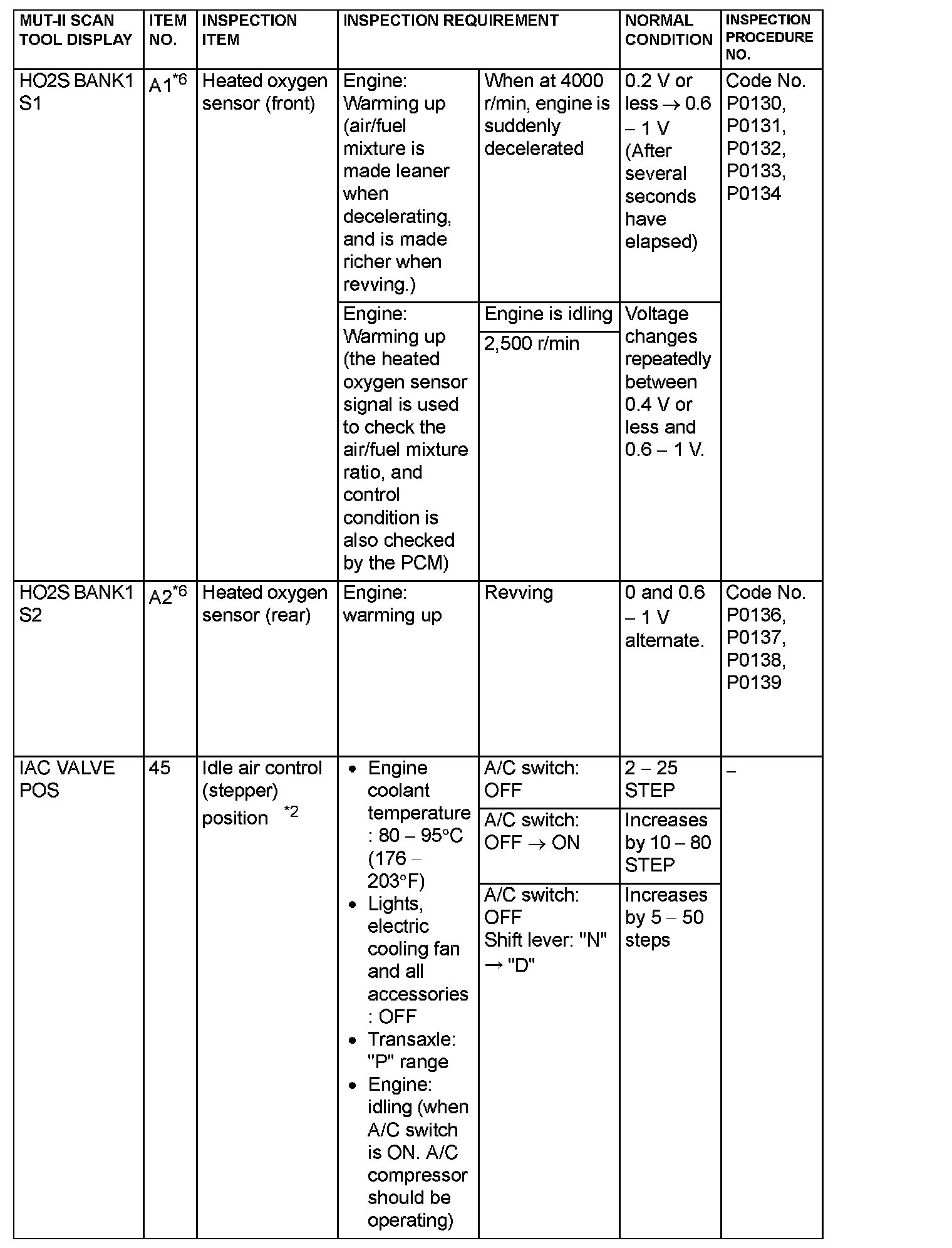 NOTE: *6: GST items. [Data list items consist of MUT-II items and GST items. GST items can be accessed through the use of a general scan tool (GST). When MUT-II (MB991502) is used, MUT-II items appear alphabetically; then, GST items appear alphabetically. The black and white characters of the GST items are inverted from the MUT-II items.]