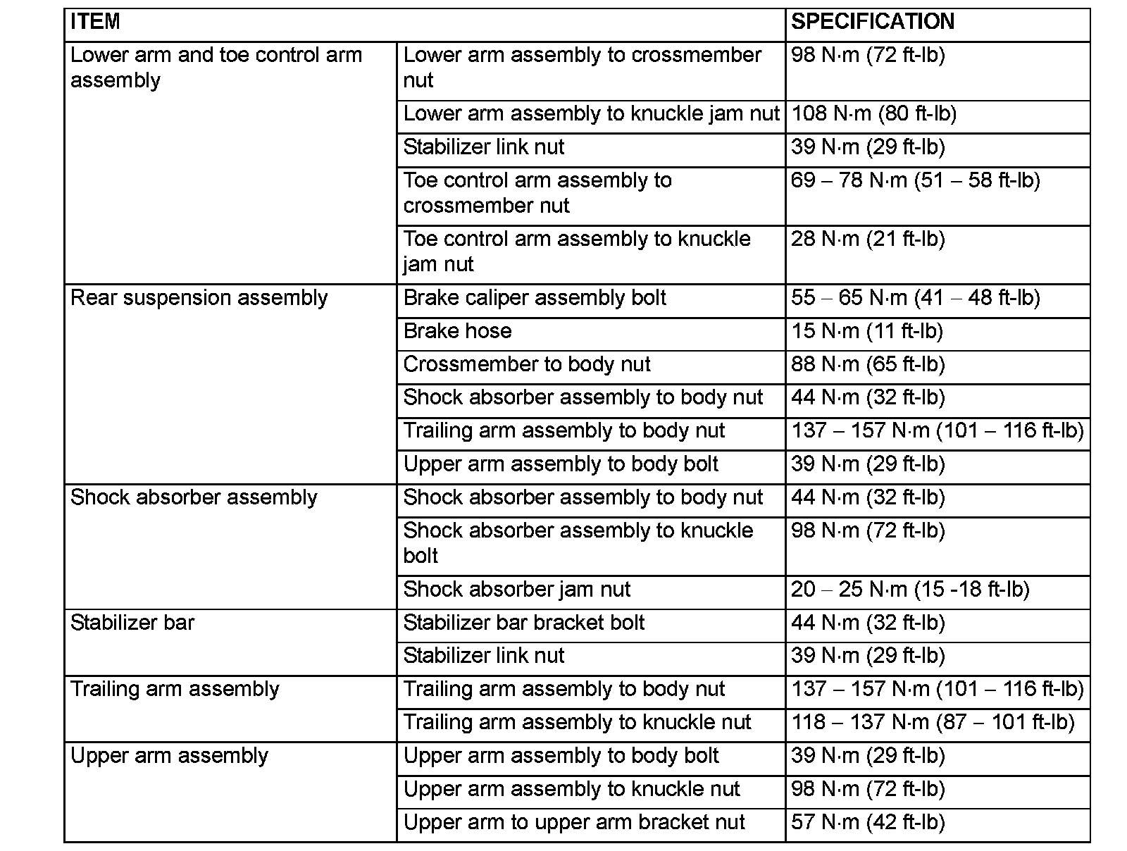 FASTENER TIGHTENING SPECIFICATIONS