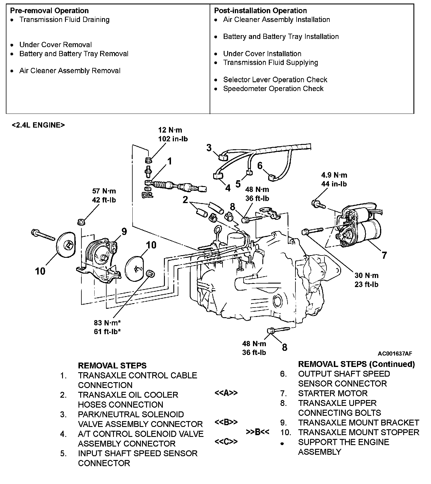 <> TRANSAXLE MOUNT BRACKET REMOVAL