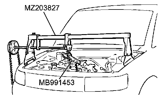 Set special tools MB991453 and MZ203827 to the vehicle to support the engine assembly.
