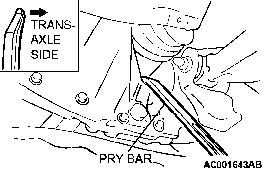 1. Insert the pry bar between the transaxle case and the driveshaft as shown to remove the driveshaft. <2.4L ENGINE, 3.0L ENGINE-LH>