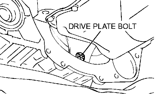 2. Remove the drive plate bolts while turning the crankshaft.