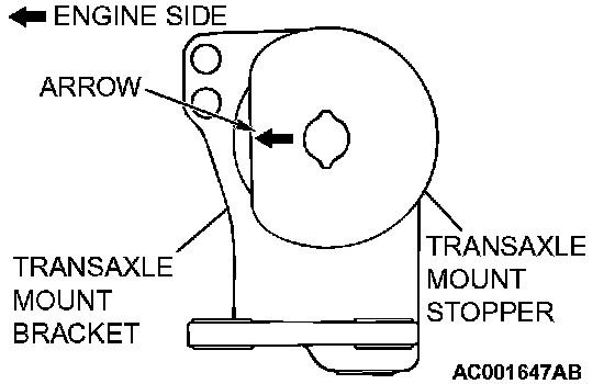 Install the transaxle mount stopper so that the arrow mark points as shown in the illustration.