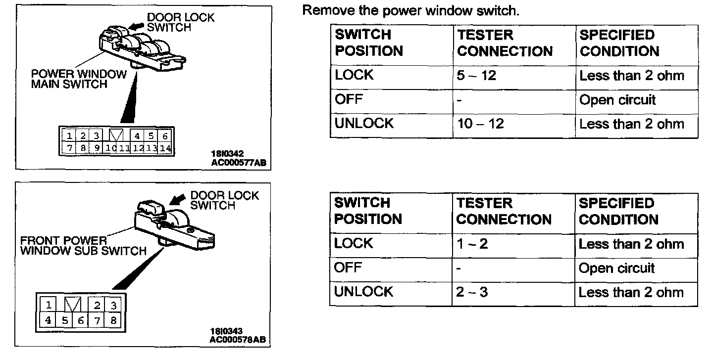 Power Door Lock Switch: Testing and Inspection