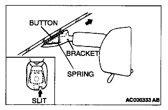NOTE: While the spring is pushed in, connection between the spring and the pawl of the button is released.