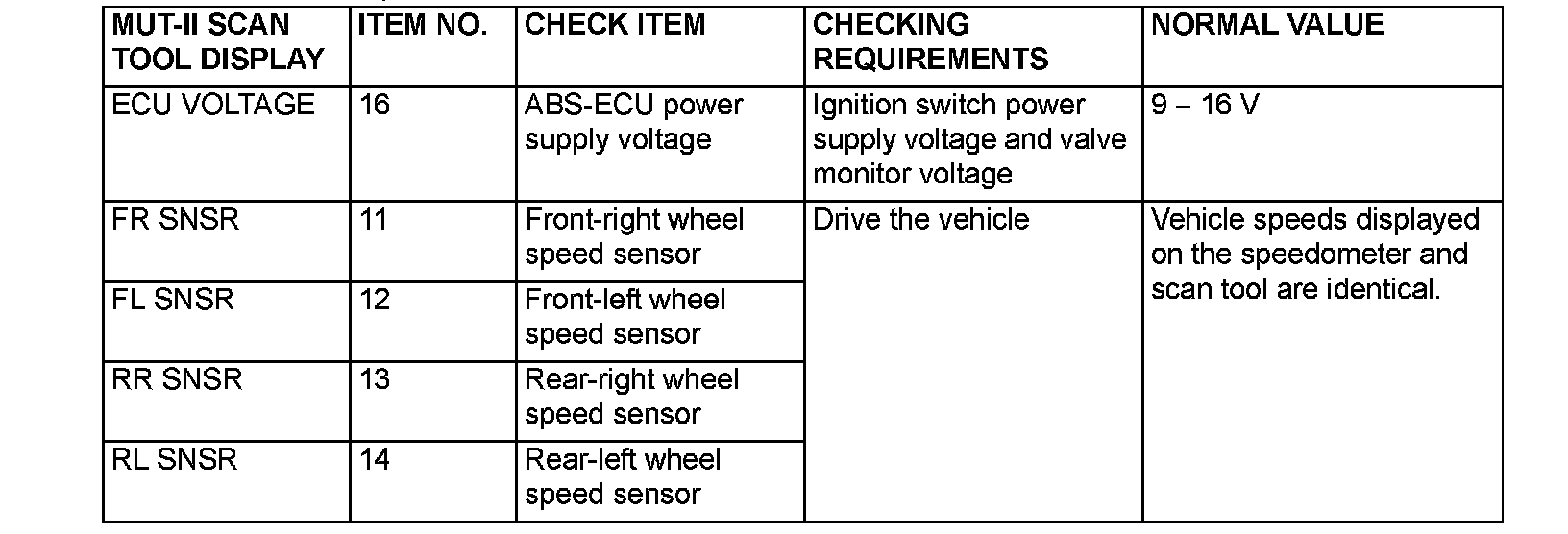 The following items can be read by the scan tool from the ABS-ECU input data