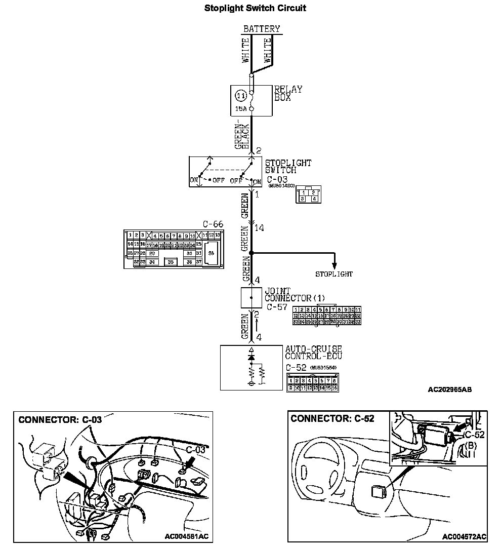 When The Brake Pedal Is Depressed, Auto-cruise Control Is Not Cancelled.Stoplight Switch Circuit Part 1: